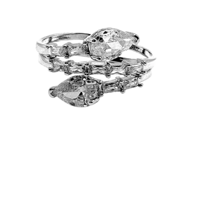 Silver Cubic Zirconia Trio Layer Pear Cocktail Ring (mixed cut)