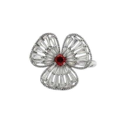 Brown Cubic Zirconia Cocktail Ring – Floral Statement Design with Baguette Accents