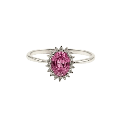 Rose Bloom Halo Ring – Pink Cubic Zirconia Engagement Ring