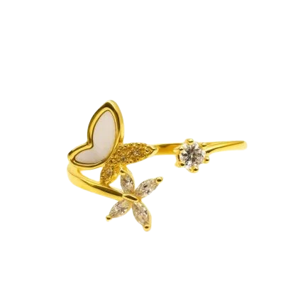 Anti tarnish waterproof butterfly gold plated ring