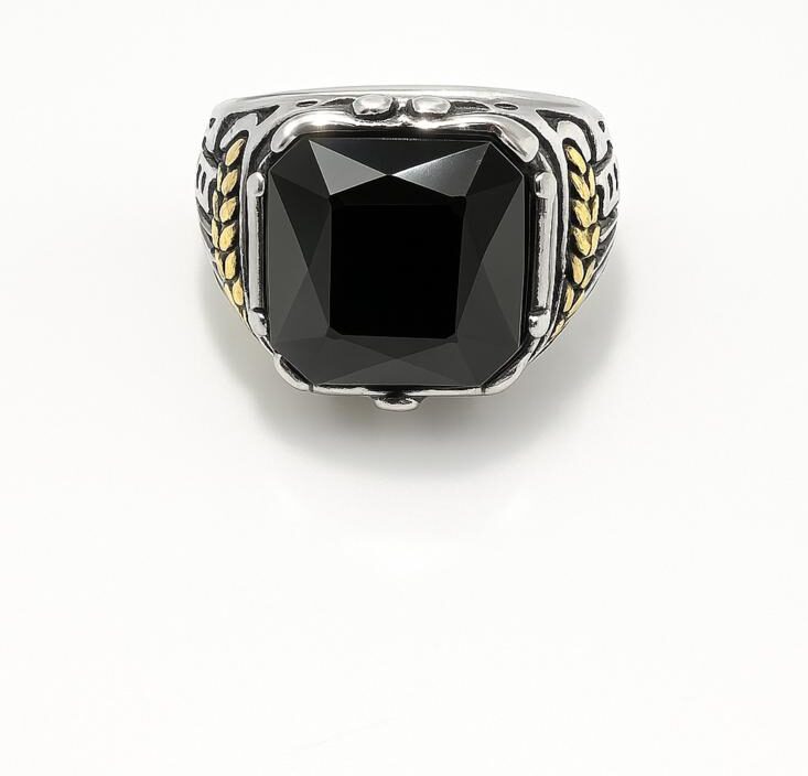 The striking black base is accented with a polished gold-tone detail, creating a sharp, masculine look that suits both casual and formal styles. Comfortable to wear and made to last, this ring is perfect for daily wear, special occasions, or as a standout gift for him.