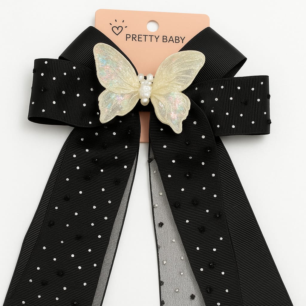 Elegant and timeless, the Black Butterfly Bow Clip adds a chic, stylish accent to any hairstyle.