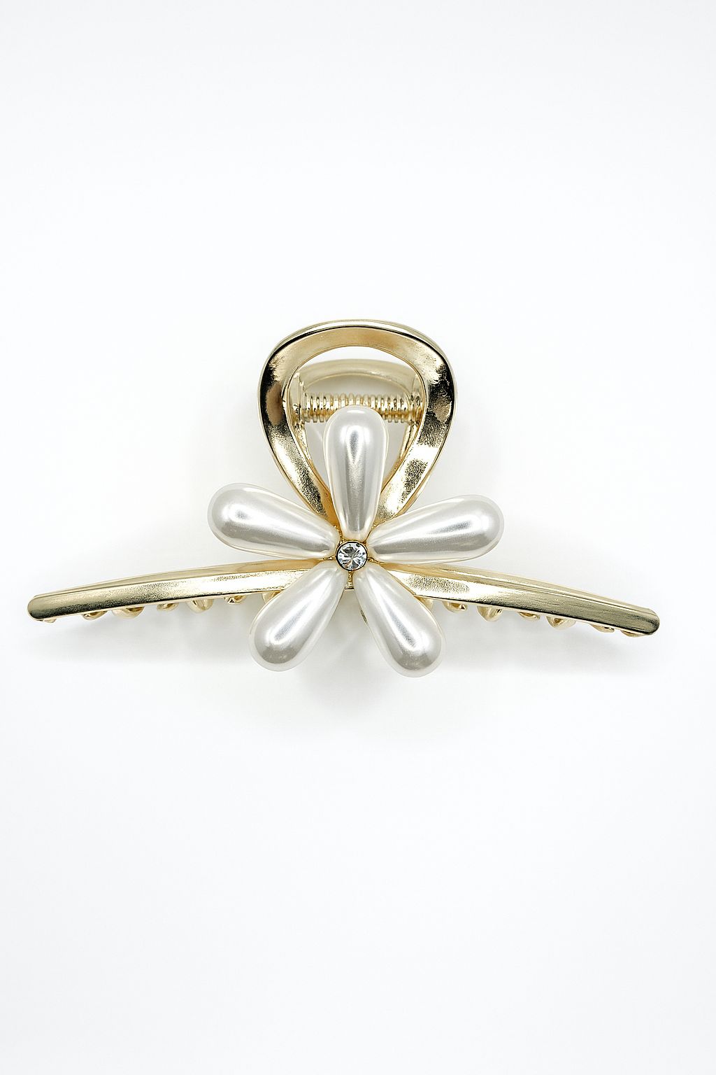 Floral Pearl Petal Gold Claw Clip – Spring Grip type
