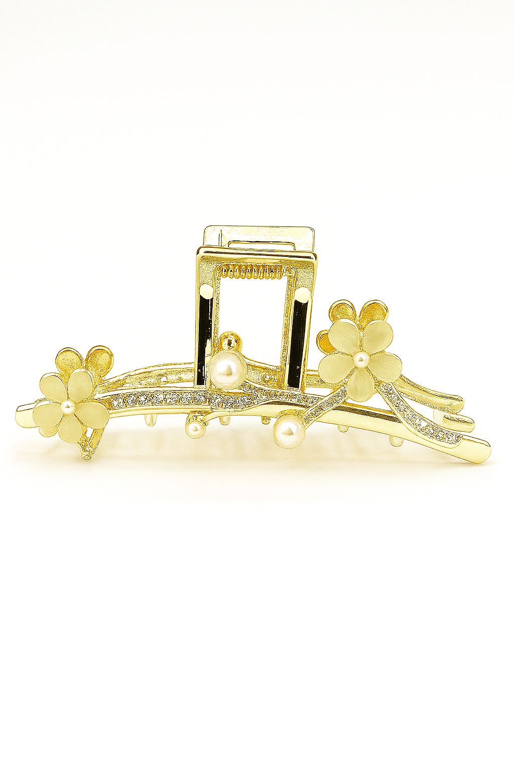 Golden Bloom Garden Hair Claw Clip – Floral Pearl Rhinestone Claw Clip