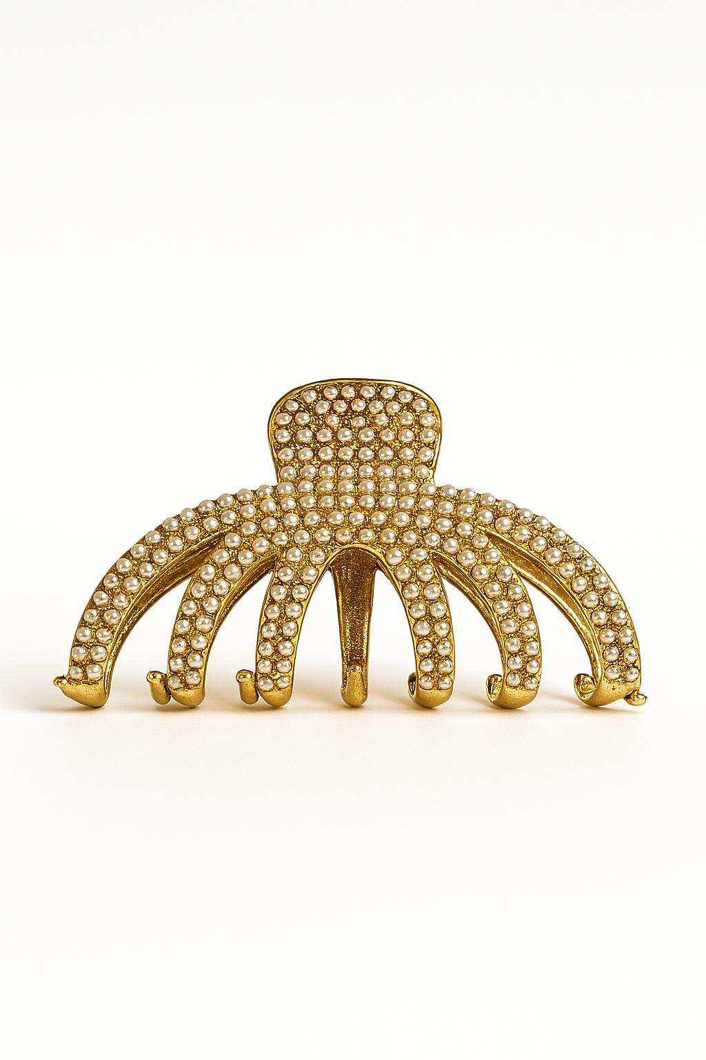 Golden Octavia Hair Claw Clip – Pearl Studded Octopus Style Spring Claw Clip