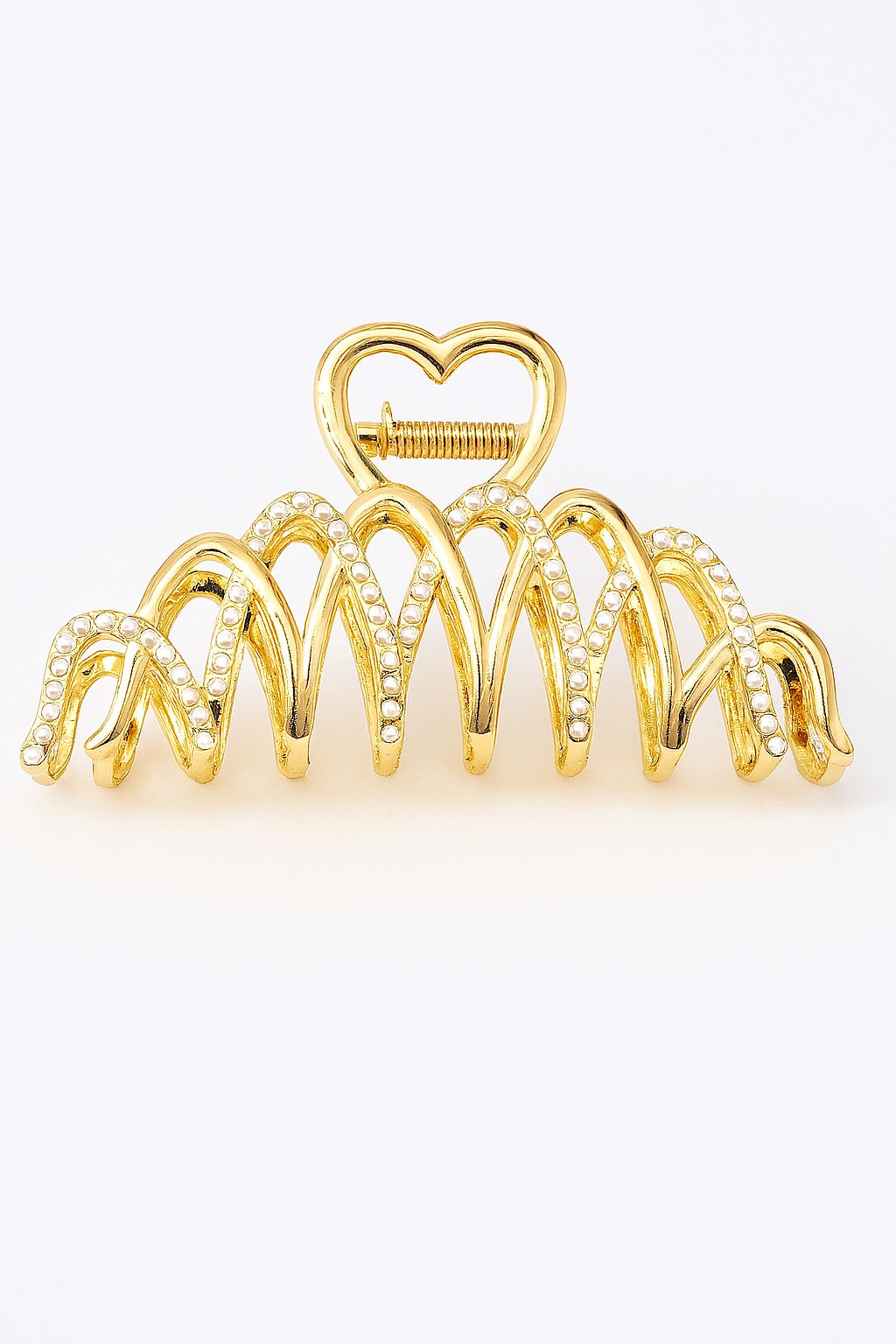 Golden Wave Hair Claw Clip – Crystal Lined Spiral Spring Claw Clip with Heart Handle