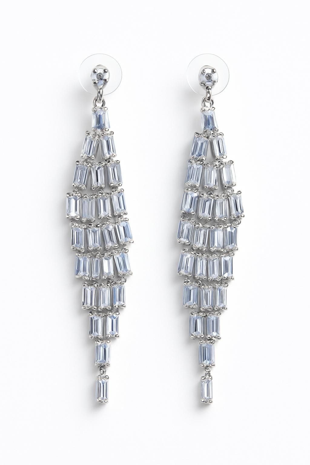 Icefall Cascade – Long Drop Earrings with Baguette- Cubic Zirconia