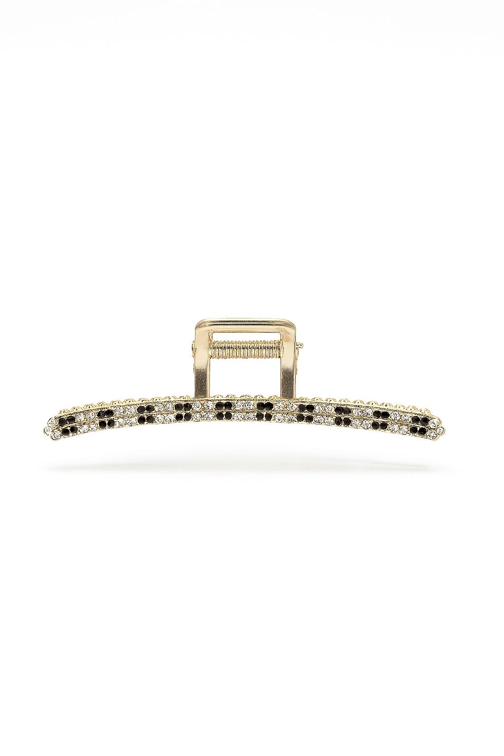 Midnight Bloom Hair Claw Clip – Gold Curved Claw Clip with Black & White Crystal Flowers