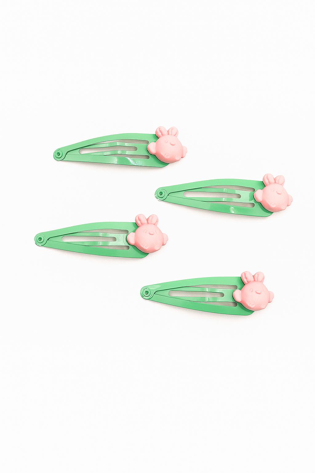 Let your little one show off some oink-tastic style with the Piggy Pal Snap Clips – Set of 4! These vibrant green clips feature adorable 3D pink piglet faces that are full of charm and perfect for playful days. Whether it’s school, parties, or everyday giggles, these clips add a whimsical flair to any hairstyle.