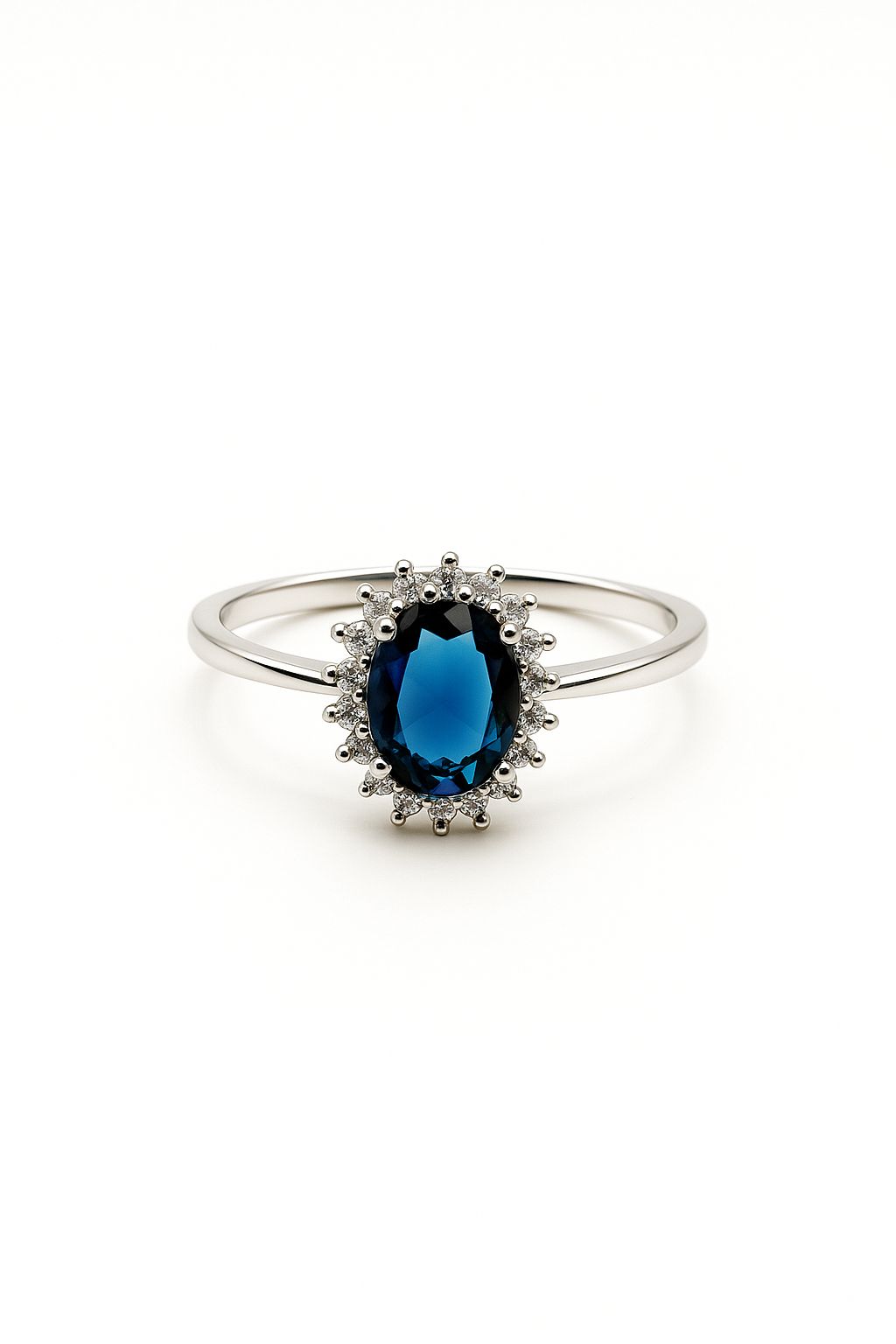 Royal Halo Ring – Oval Blue Sapphire & Cubic Zirconia Engagement Ring