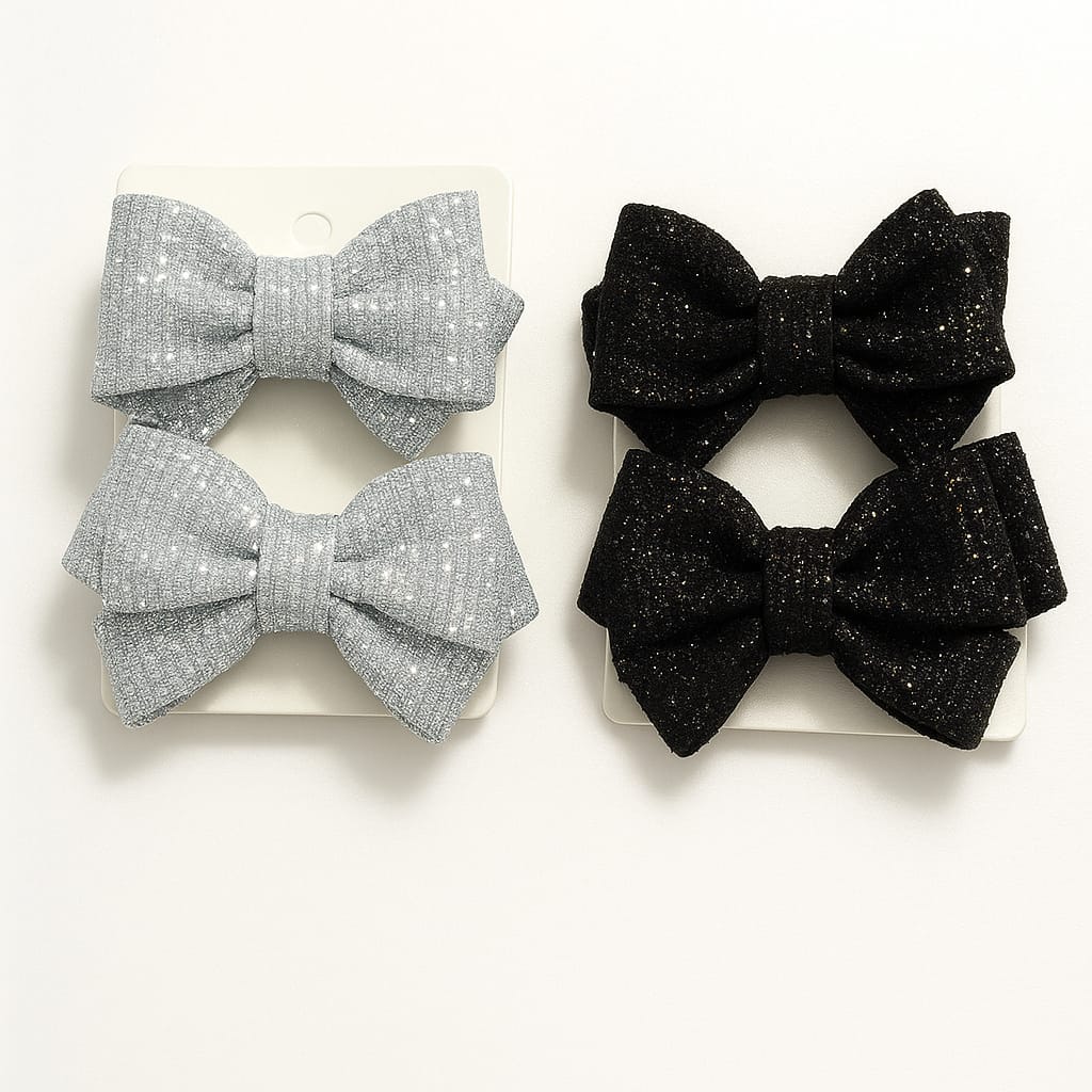 Bold and sparkly, the Silver and Black Glittery Bow Clip adds instant glam to any look — perfect for parties, events, or standout everyday style.