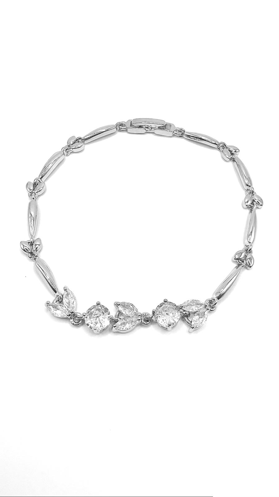 Silver Cubic Zarconia Connecting Leaf with Stone Braclet