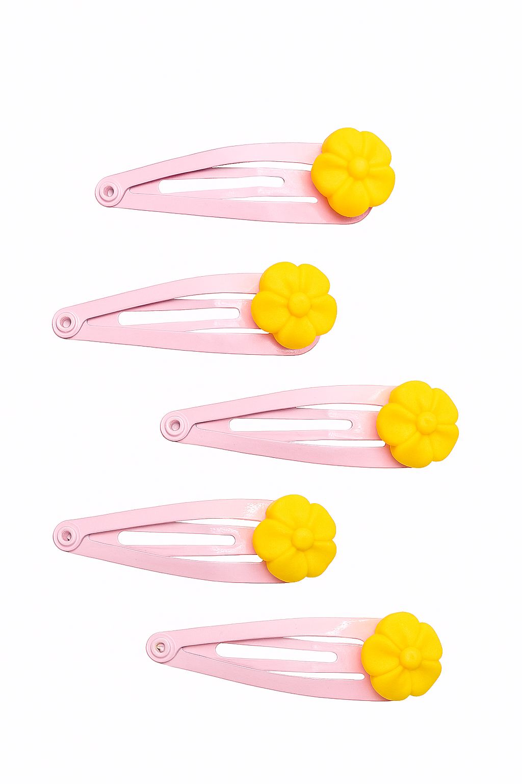 Brighten up your hairstyle with the cheerful charm of the Sunshine Bloom hair clip set. Each of the five pink snap clips is topped with a vibrant yellow flower, creating a fresh and playful look that’s perfect for spring and summer outfits. These lightweight, easy-to-use clips provide a gentle yet secure hold, making them ideal for both everyday wear and special occasions. Whether it’s for kids or flower-loving grown-ups, this set adds a sunny flair to any look.