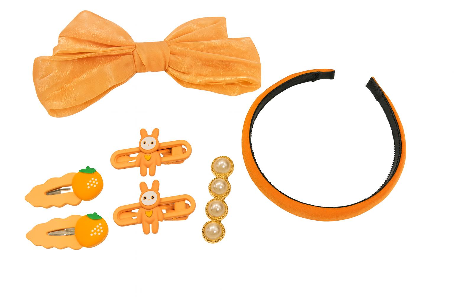 Tangerine Pop – 7-Piece Hair Accessory Set with Bow Clip, Headband, Snap Clips, Alligator Clips & Pearl Barrette